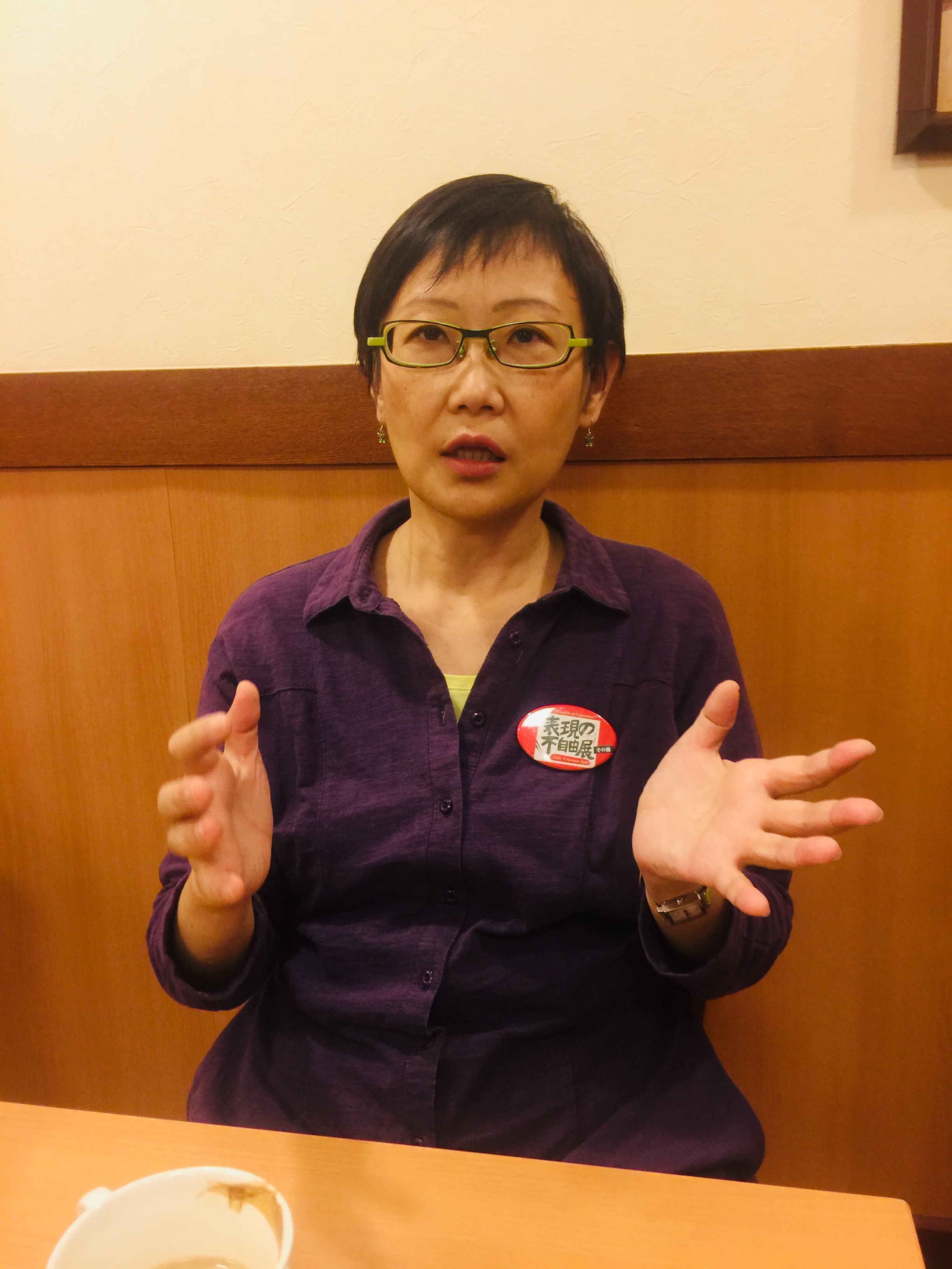 “검열로 표현의 자유가 침해당한 작가들과 연대하는 행위다. 반면 일본 작가들은 검열에 대한 인식이 옅다. 아베 정권 들어 자숙(自肅)과 손타쿠(忖度·윗사람이 원하는 대로 알아서 행동함)가 흔히 얘기될 정도로 자기 검열이 퍼지고 있다. ”