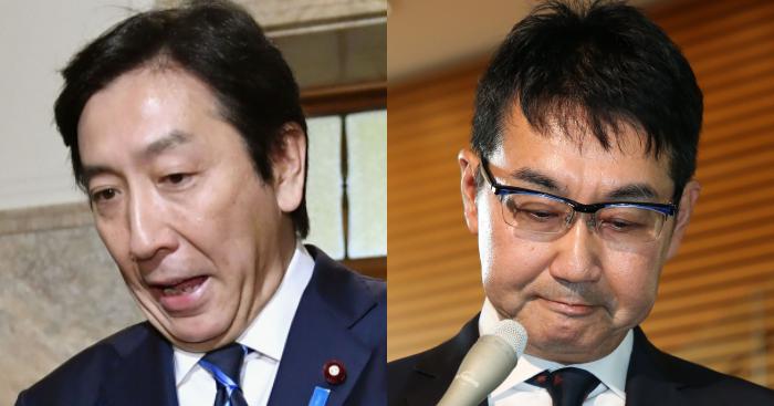 지난 9월11일 개각으로 새로 기용된 스가와라 잇슈(菅原一秀) 전 경제산업상과 가와이 가쓰유키(河井克行) 전 법무상은 10월말 공직선거법 위반 등 의혹으로 6일 간격으로 사임했다.이들은 당시 사임 의사를 밝히면서 제기된 의혹에 대해 “설명 책임을 다하겠다”고 입을 모았다.