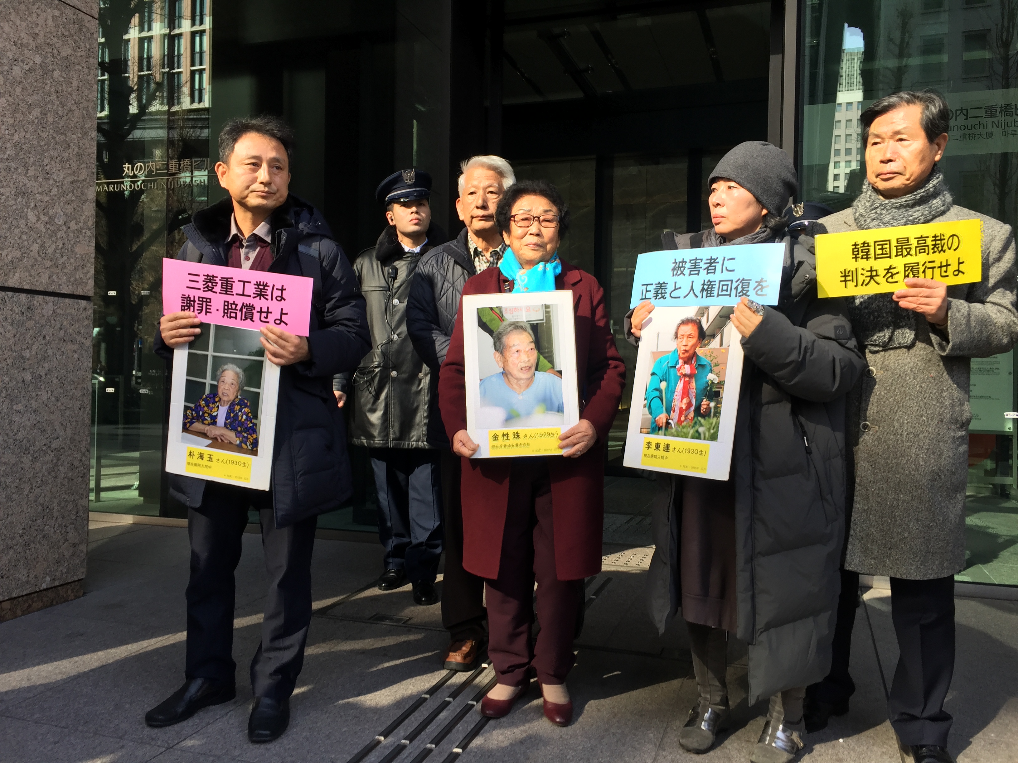 외무성 앞에서 1시간 가까이 진행된 금요행동은 인근 마루노우치 빌딩가에 자리한 미쓰비시중공업 본사 앞으로 장소를 옮겨 이어졌다. 참가자들은 미쓰비시 측을 향해 피해자들의 존엄을 회복하기 위해 협의 자리를 마련할 것을 요구했다. ‘임을 위한 행진곡’과 ‘진실은 침몰하지 않는다’를 부르기도 했다.