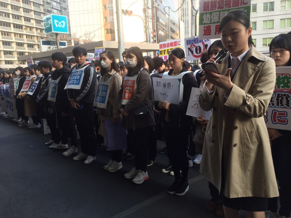 집회에 참석한 이들은 조선학교에 대한 무상화 적용 배제가 단순히 돈의 문제가 아니라 생존과 존엄의 문제라면서 ‘차별’ 시정을 요구했다. 이들은 문부과학성 건물 앞 도보를 길게 둘러싸고 “문부과학성은 모든 아이들에 대해 배울 권리를 보장하라”, “일본 정부는 조선학교에 대한 차별을 그만두라”고 목청껏 외쳤다.