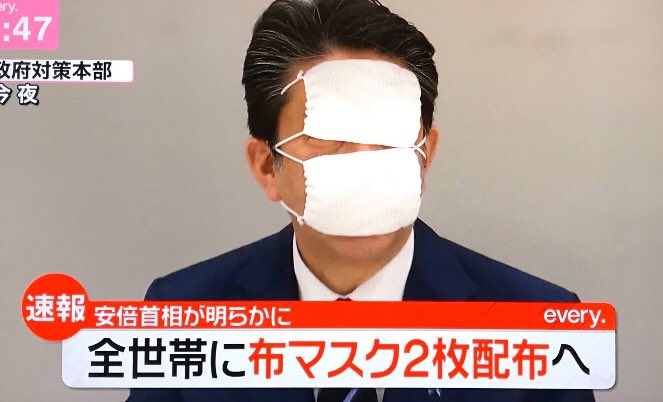 일본 네티즌들은 천 마스크 2개로 아베 총리의 입과 눈을 가린 합성 사진 등을 올리면서 정부 대응을 비꼬았다. 일본 최장수 애니메이션인 <사자에씨>의 주인공 가족이 4명씩 마스크 한 장을 겹쳐 쓴 패러디물이 확산되기도 했다.