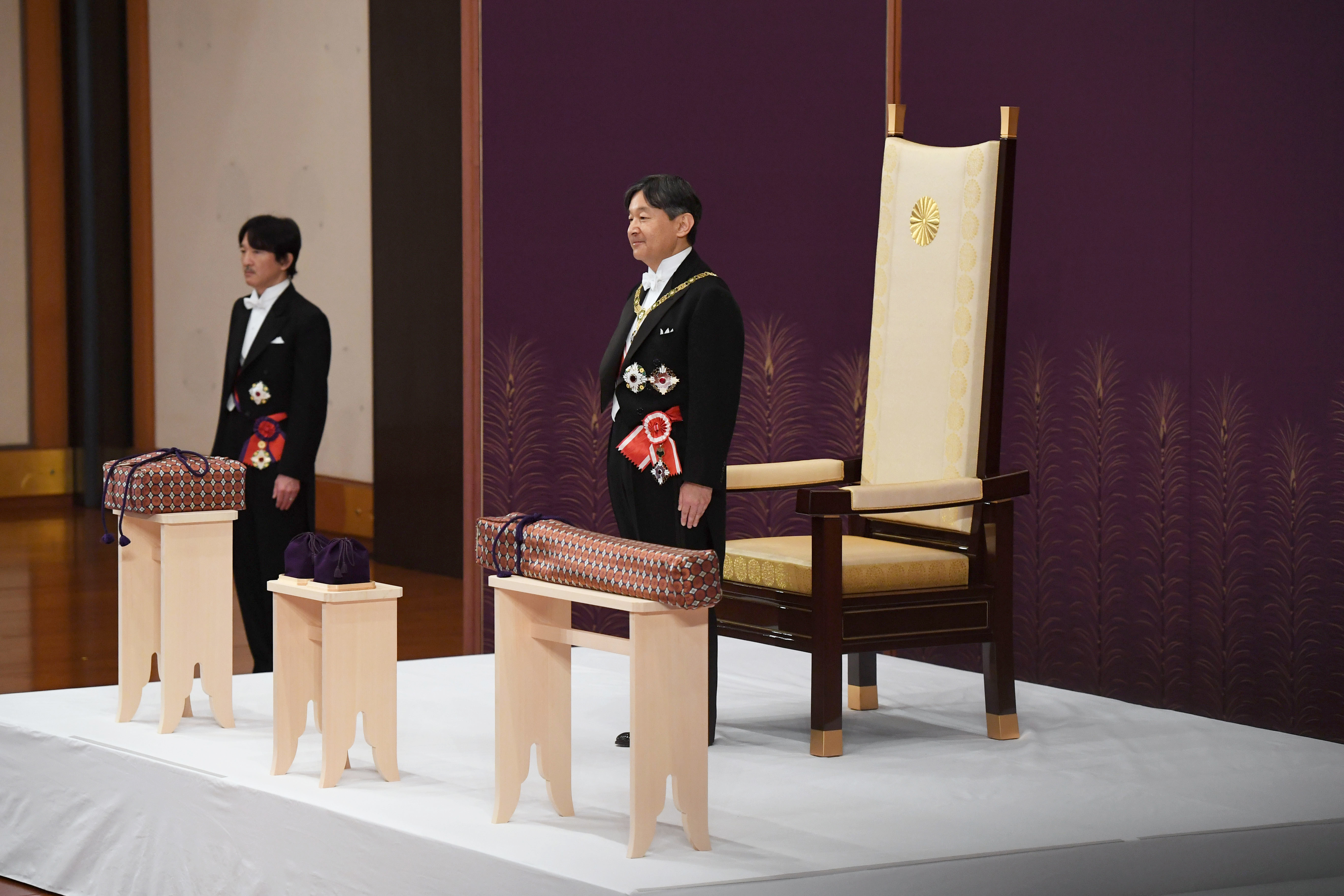 지난 1일 도쿄 고쿄(皇居)에서 열린 ‘검새(劍璽) 등 승계의식’. 일왕가의 상징인 ‘삼종신기(三種神器)’ 등을 물려받는 나루히토(德仁) 새 일왕(59) 옆에는 단 두 사람의 왕족만 배석했다. 왕위 계승 자격을 갖춘 성인만 배석할 수 있기 때문에 동생 후미히토(文仁·53)와 휠체어에 앉은 작은 아버지 마사히토(正仁·83)만 자리한 것이다. 왕위 계승 후보는 후미히토의 아들 히사히토(悠仁·12)까지 포함해 단 3명. 일왕가가 처한 현실을 보여주는 장면이라고 일본 언론은 전했다.