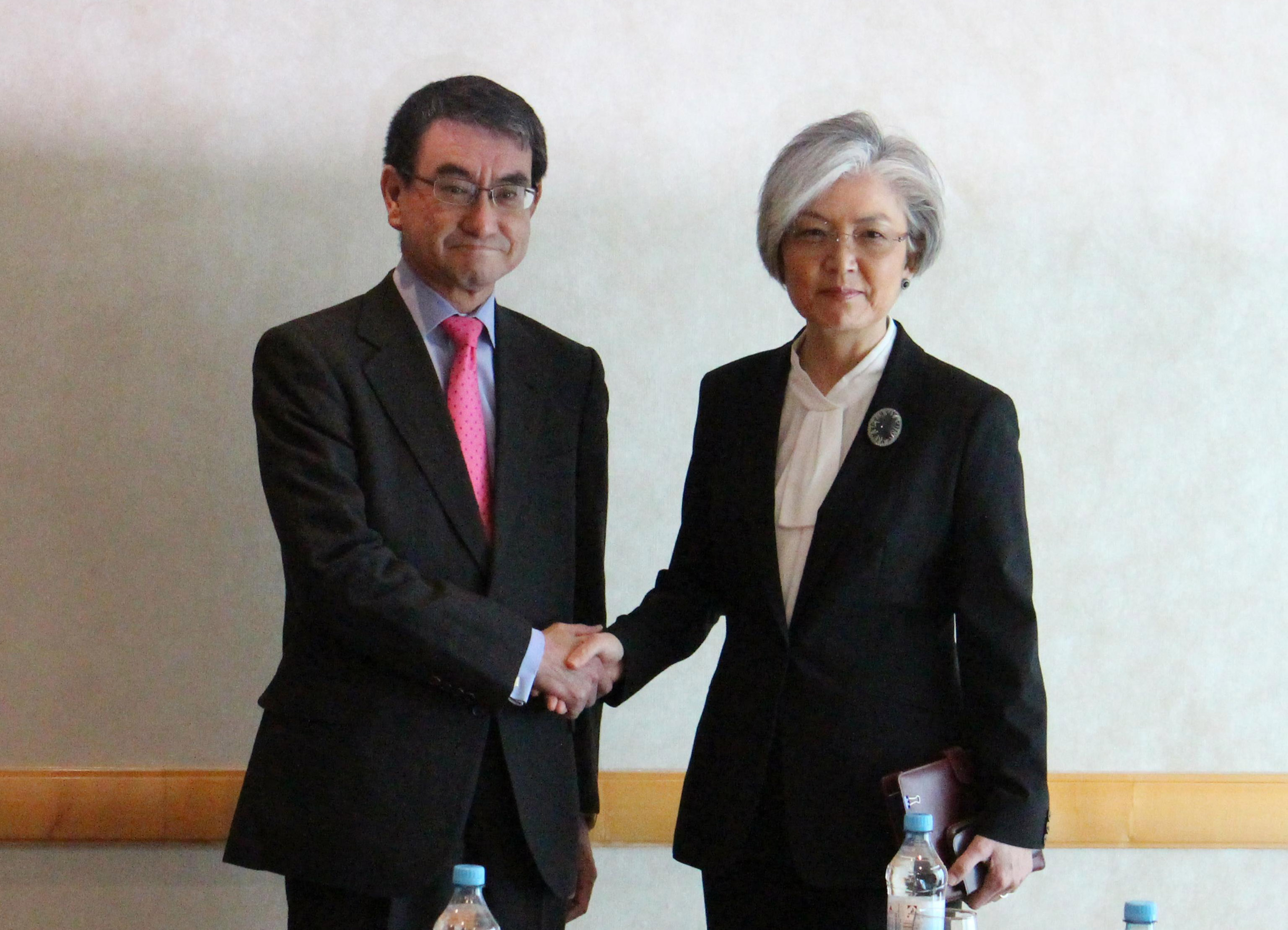 아사히는 또 복수의 일본 정부 관계자를 인용해 고노 다로(河野太郞) 외무상이 지난달 파리에서 강경화 외교장관과 회담 시 “외교장관 협의를 지속하는 것은 중요하다”고 말했고 강 장관도 이에 동의했다고 전했다. 오는 28~29일 오사카(大阪)에서 열릴 주요 20개국(G20) 정상회의에 맞춰 외교장관 회담을 연다는 방침도 확인했다고 한다.