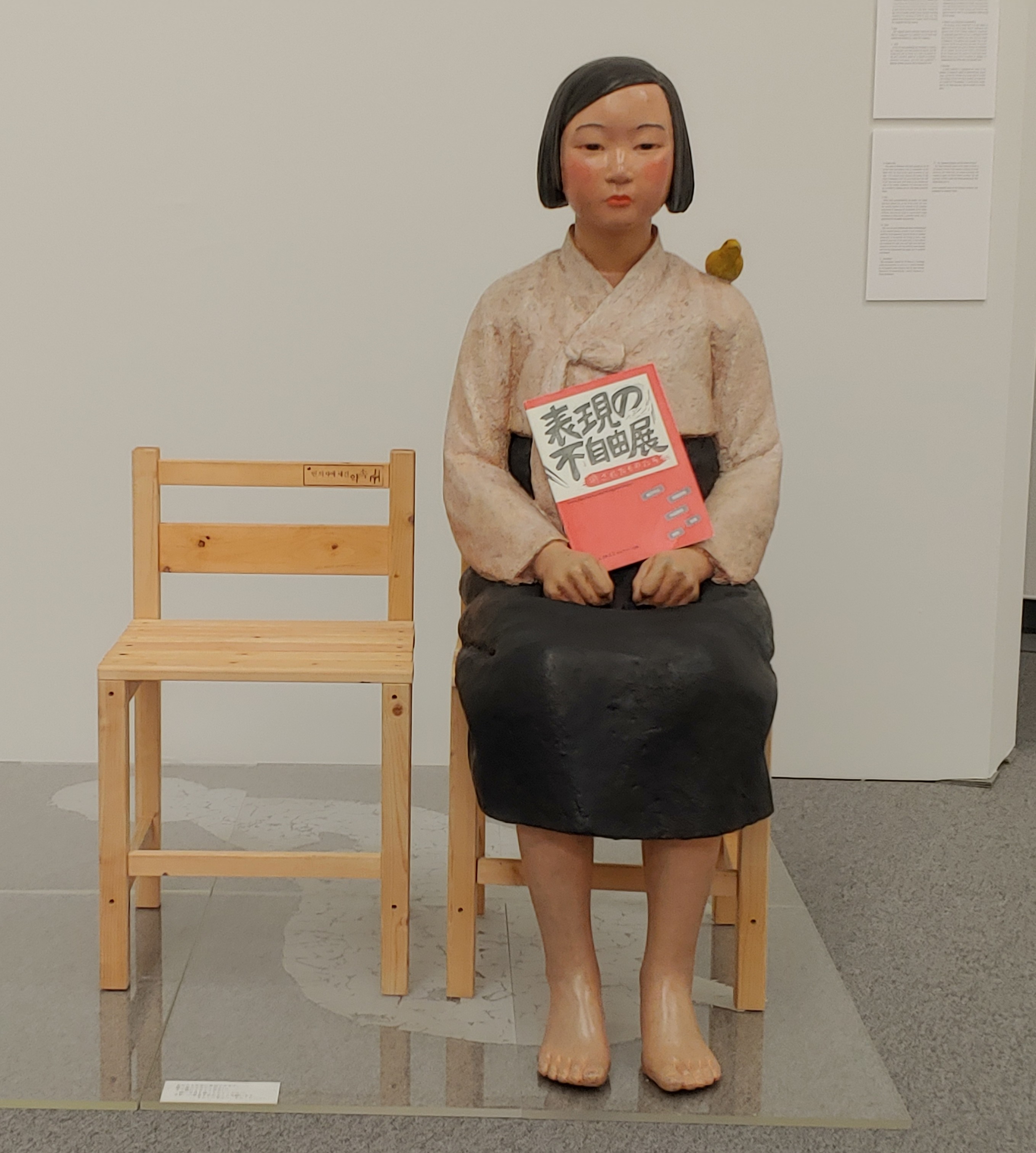 이번 전시는 소녀상을 비롯해 안세홍 작가의 일본군 피해자 할머니 사진, ‘천황제’ 비판 작품 등 그간 ‘정치적인 이유’로 제대로 전시되지 못한 작품들을 모아 선보였다. 소녀상이 온전한 형태로 일본 공공미술관에서 전시되는 것은 처음이었다. 소녀상은 2012년 도쿄도미술관에서 축소 모형으로 전시됐지만, 나흘 만에 철거된 바 있다.