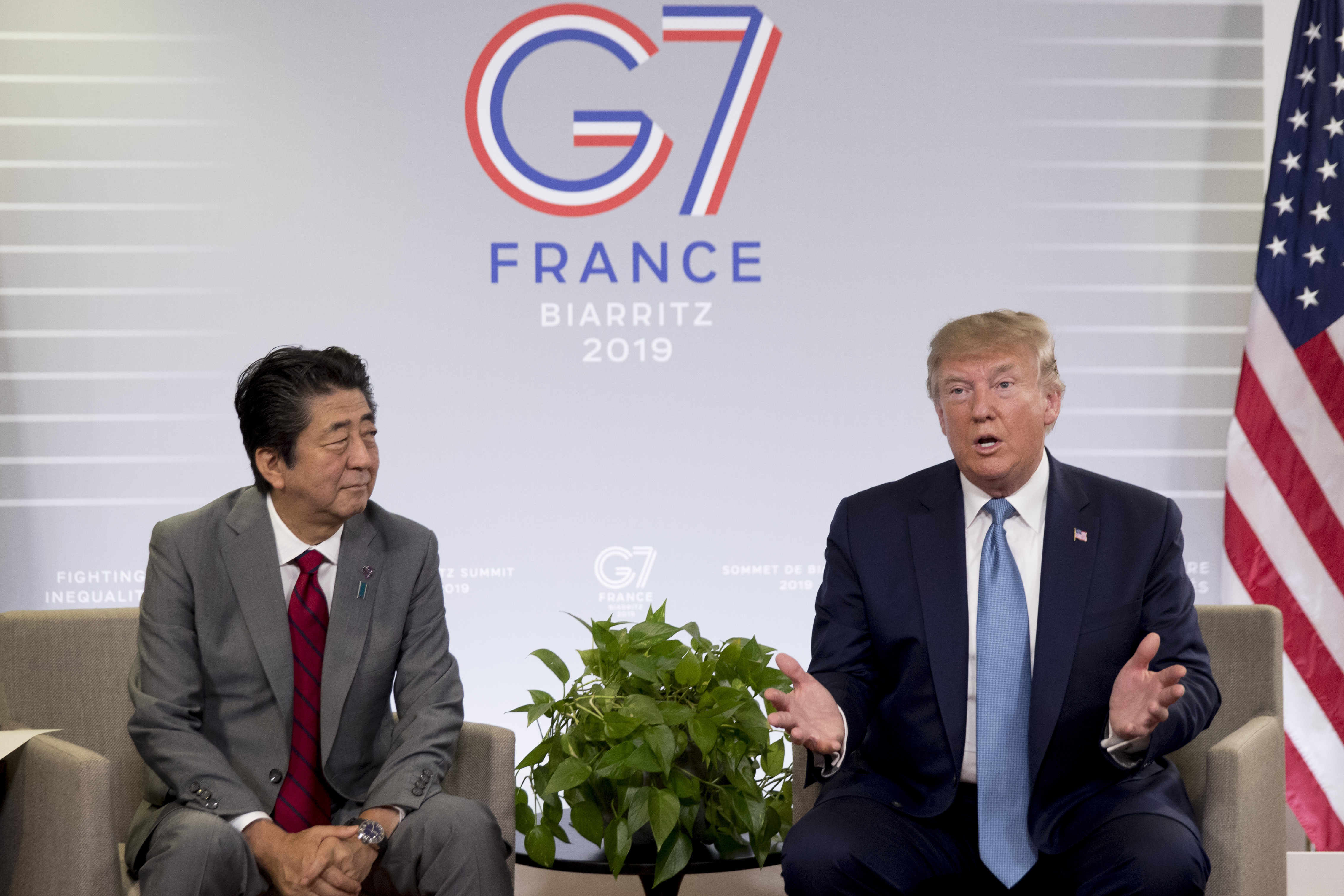트럼프 대통령과 아베 신조(安倍晋三) 일본 총리는 이날 프랑스 비아리츠에서 양자회담을 가진 뒤 기자회견에서 무역협정에 원칙 합의하고 오는 9월 서명을 목표로 한다고 밝혔다. 트럼프 대통령은 “일본과 교섭을 거듭해 원칙적으로 합의에 이르렀다”고 말했고, 아베 총리는 “양국 경제에 틀림없이 커다란 플러스가 될 것”이라고 했다.