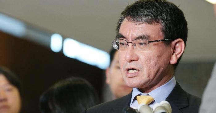 고노 외무상은 지난 7월 남관표 주일 한국대사을 초치한 자리에서 말을 끊고 “무례하다”고 말하는 등 수 차례 외교 결례 논란을 일으킨 바 있다. 또 장관급 인사로서 국가 원수인 문재인 대통령을 비판하는 외교적 결례를 범했으며, 지난달 27일에선 “한국이 역사를 바꿔쓰고 싶다고 생각한다면, 그런 것은 불가능하다는 것을 알 필요가 있다”고 ‘적반하장’식으로 말했다.