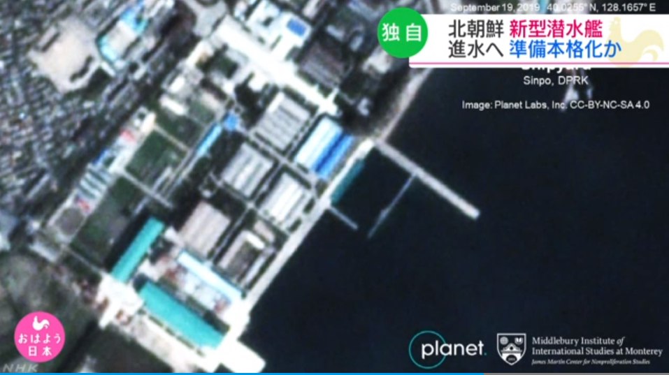 북한 핵문제를 연구하는 미국 미들베리국제대학원과 위성사진업체 플래닛사는 북한 동부 함경남도 신포에 있는 조선소의 최신 위성사진을 분석한 결과 이같이 밝혔다고 NHK가 전했다.