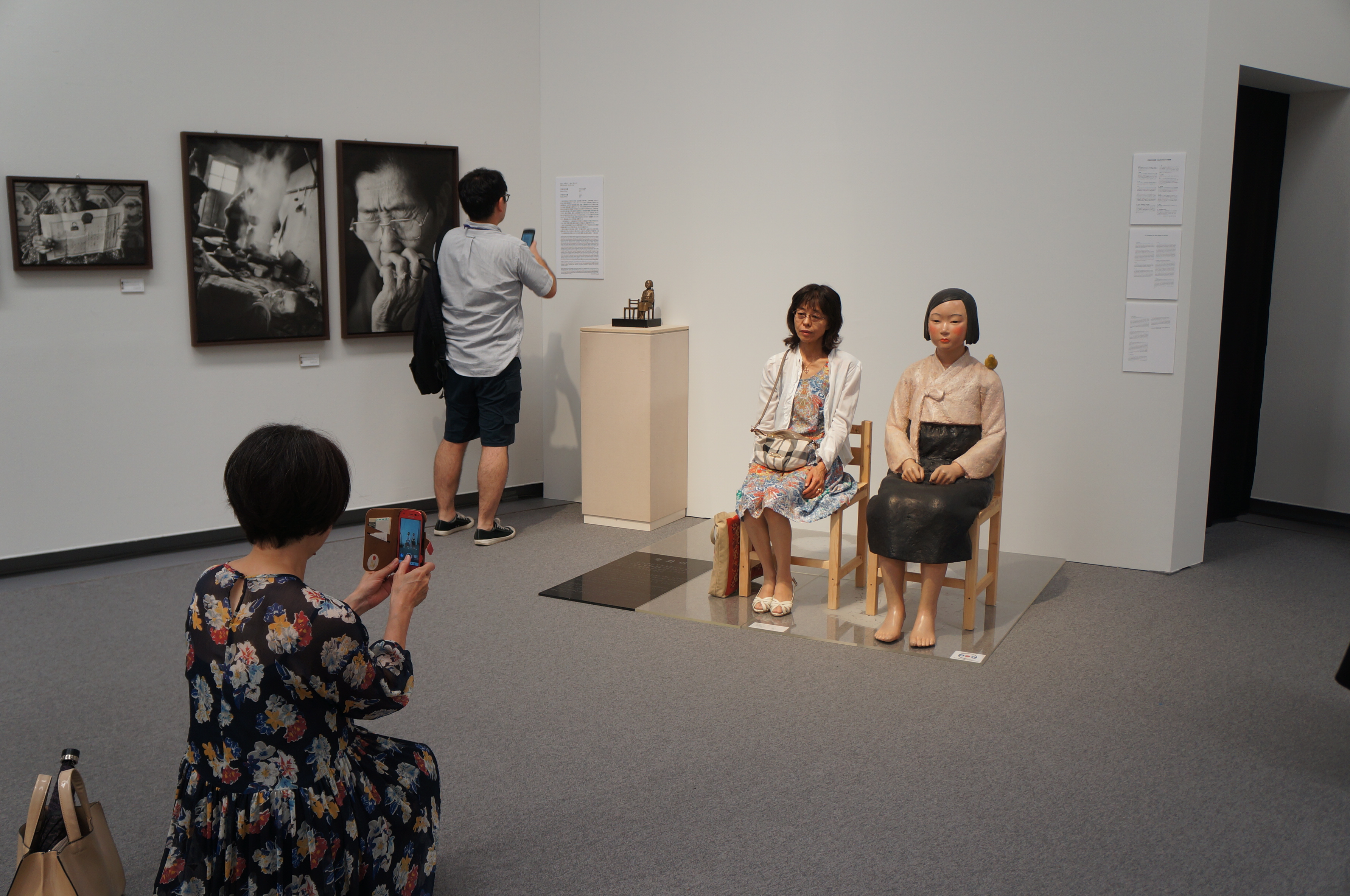 김운성·김서경 부부 작가가 제작한 소녀상은 이날 개막된 일본 최대 규모의 국제예술제 ‘아이치 트리엔날레 2019’의 기획전 ‘표현의 부자유전·그 후’에 출품됐다. 소녀상이 평화비, 그림자 등과 함께 온전한 모습으로 일본 공공미술관에 전시된 건 처음이다.