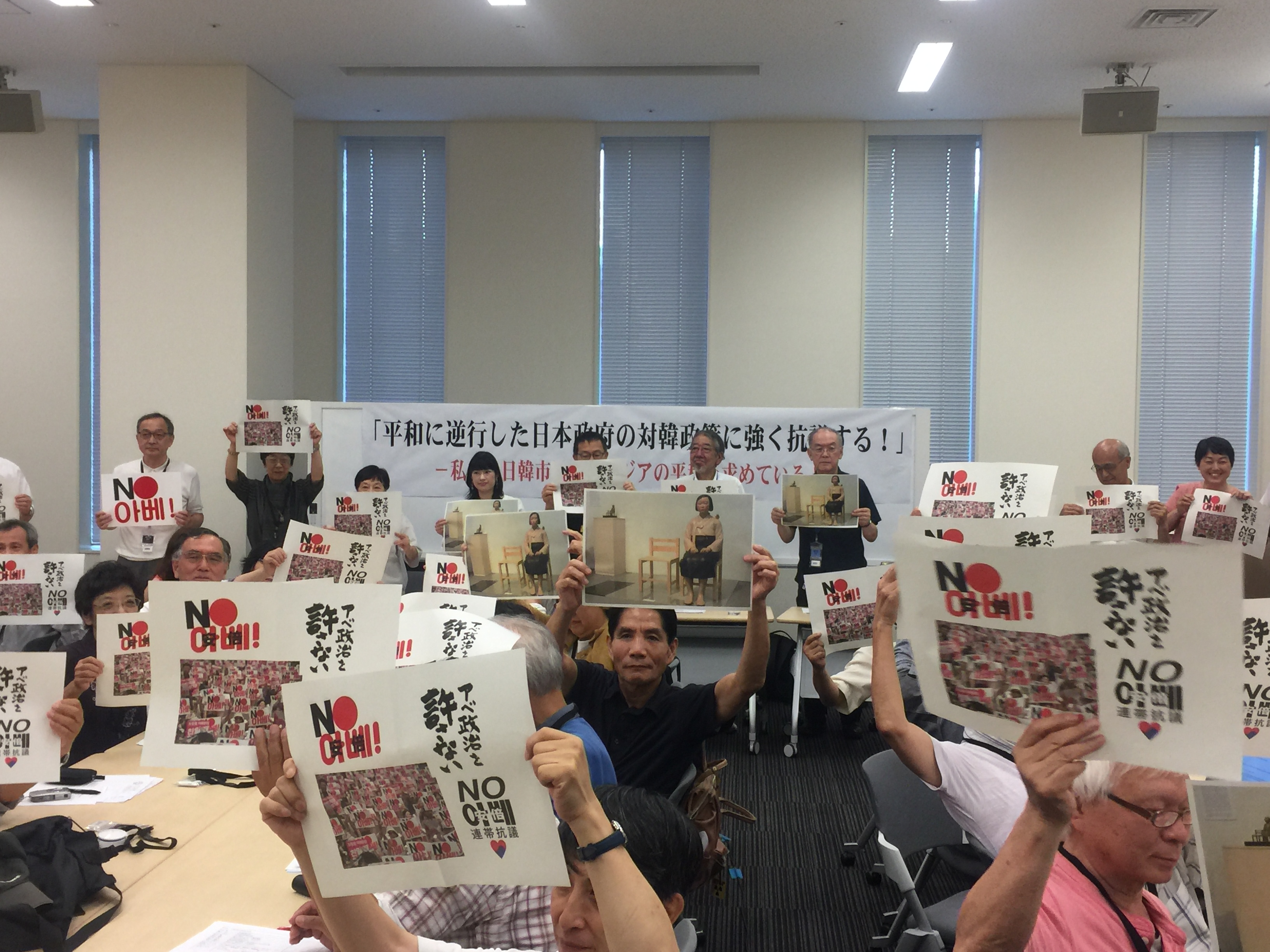 ‘한·일시민교류를 진행하는 희망연대’ 등 10여개 일본 시민단체는 이날 도쿄(東京) 참의원 의원회관에서 긴급 집회 및 기자회견을 열고 한국을 화이트리스트(수출우대국)에서 배제한 일본 정부를 강력 비판했다. 참석자들은 “화이트리스트에서 한국을 제외한 각의 결정은 한·일 우호를 근본부터 파괴하는 행위로, 이를 강하게 항의한다”면서 일본 정부가 조치 철회와 진지한 과거 청산에 나설 것을 요구했다.